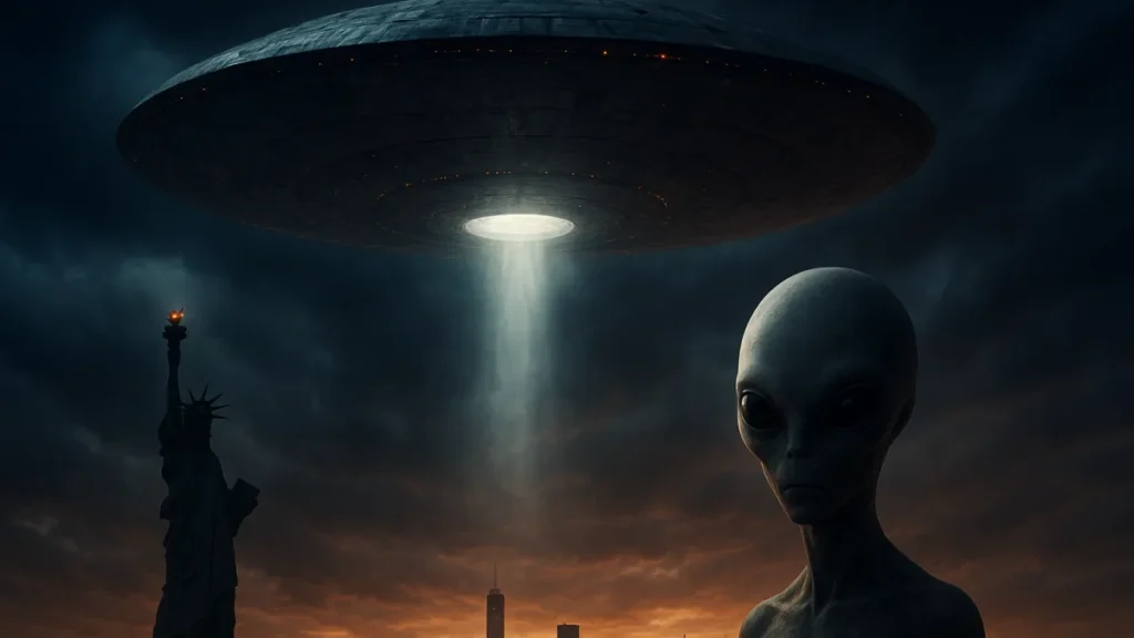 Os alienígenas no filme são menos sobre características biológicas e mais sobre presença: gigantescas naves, tecnologia esmagadora e consequências visuais impactantes.